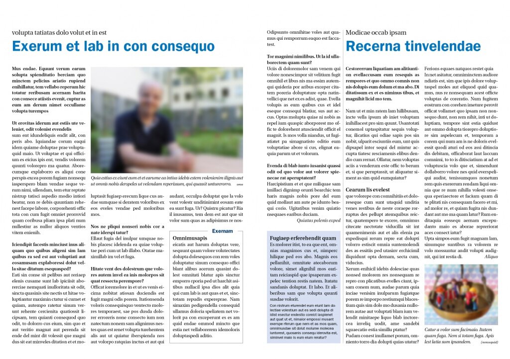 Um Ihnen die wichtigsten Erkenntnisse und Tipps näherzubringen, helfen Beispiele mehr als tausend Worte. Daher habe ich einige missglückte Fälle nachgebaut, die ich in unterschiedlichen Magazinen gefunden habe. Die Beispiele wurden entfremdet, der Text durch Mustertext ersetzt. Es geht mir nämlich nicht darum, jemanden an den Pranger zu stellen, sondern aufzuzeigen, wie schade eine missglückte Text-Bild-Kombination ist. Um den Wow-Effekt des «vorher – nachher» und die Verbesserungen in der Lesbarkeit zu zeigen, habe ich für jedes Beispiel jeweils einen optimierten Vorschlag erstellt.