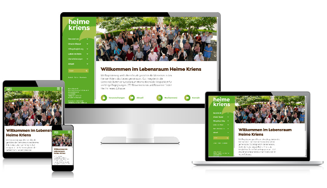 Für die Heime Kriens AG konzipierten und gestalteten wir den Webauftritt. Gleichzeitig sind wir auch Partner für zwei Printprodukte: Für die Hauszeitung und den jährlichen Geschäftsbericht unterstützen wir die Kommunikationsstelle im Texten und Layouten und besorgen den Druck.