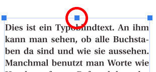 Im Text-/Bildmodus wird hingegen der Inhalt eines Objektes bearbeitet. Die Eckpunkte sind dann weiss mit blauem Rahmen dargestellt.